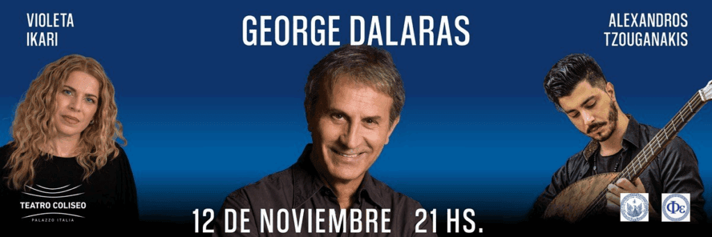 La Fundación Helénica en Argentina junto con La Colectividad Helénica de Buenos Aires, tienen el honor de presentar al legendario artista George Dalaras en un concierto único en el Teatro Coliseo, el próximo 12 de noviembre.